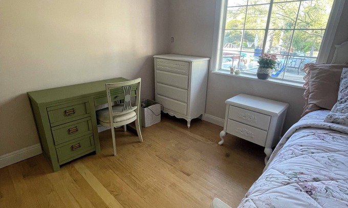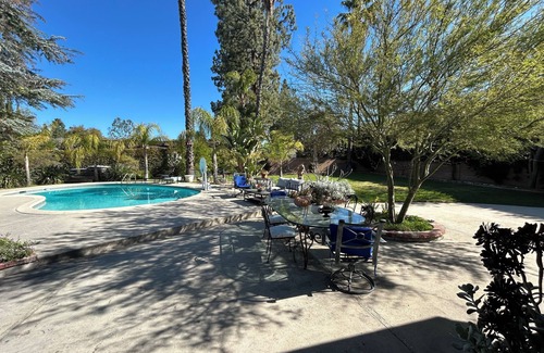Stay comfortably in Los Angeles at this 4-bedroom house. With 2 king beds, 1 queen bed, and 1 full bed, this tranquil retreat is perfect for families or groups of friends. Enjoy the cool AC, WiFi, and convenient washing machine during your stay. The 3 bathrooms feature showers and hair dryers for your convenience. Enjoy swimming in the large fresh water pool and barbecue your favorite meal. Conveniently located near the beach and all the southern California attractions. We hope you enjoy what our place and Los Angeles has to offer.