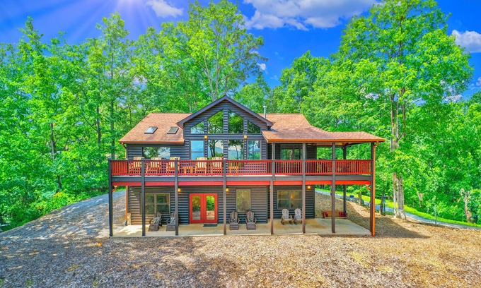 Bear Cloud is a family-friendly mountain cabin located just 5 miles from downtown Blue Ridge, Georgia. Our cabin boasts jaw dropping long-range layered mountain views, an indoor hot tub underneath the stars, 6 big screen 4K TVs, shuffleboard, foosball and much, much more! With nearby hiking trails, zip lining, gem mining, white water rafting and only minutes to charming downtown Blue Ridge restaurants & shops it's the ideal location for your mountain getaway!