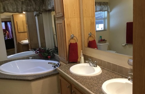 Guests are sure to enjoy a memorable vacation in this fully furnished 3 bedroom/2 bath home, with free Wifi. The master bedroom has a queen bed, bedroom #2 is furnished with a queen bed, and bedroom #3 has 2 twin beds. This home comfortably sleeps 6 adults. There are 2 futons in living room to accommodate 2 smaller size people. A 55 inch flat screen smart TV in living room with ROKU. Both bedroom 1 & bedroom #2 have a 32 inch TV with ROKU. Bedroom #3 has 16 inch TV with ROKU.