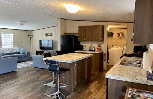 Relax and unwind in this newly built (2023) four-bedroom, two-bathroom home designed for comfort and convenience. The spacious master suite features a queen-sized bed, 60 inch Smart TV, and a private bathroom, thoughtfully situated on one side of the home for added privacy. On the opposite side, you'll find two bedrooms with queen-sized beds and a fourth bedroom with two twin beds—perfect for families or groups.