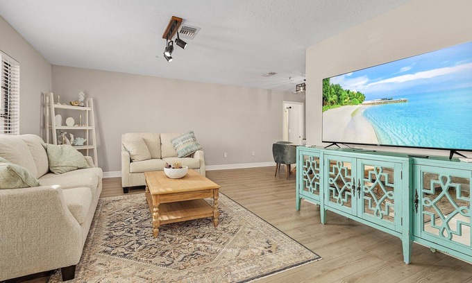 Indoors find all the modern amenities you need with a Keurig coffee maker, 65” TV, and brand new appliances w/ washer & dryer!