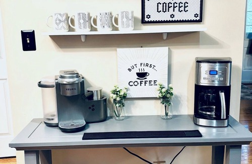 KITCHEN: Refrigerator, stove/oven, dishwasher, microwave, drip coffee maker, Keurig coffee maker, dishware & flatware, spices, Essential cooking basics that include blender, crock pot and more.