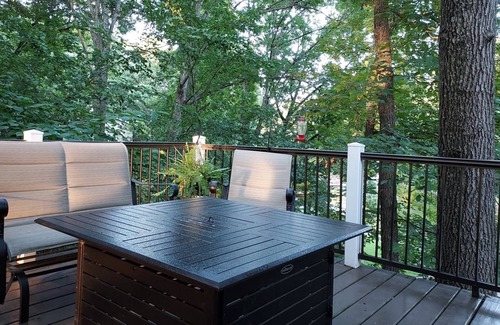 Perfect for a family and friends getaway whatever the season. Quiet wooded neighborhood with beautiful views of one of Lake Sara's deepest coves. This 5 bedroom 1-3/4 bath two story home features 4 spacious rooms on the second floor with king beds (or can be split to 2 twins) with room to add a full blow up mattress. Each offer a view of the lake or the many trees well away from the road. The master is on the first floor with access to a full bath and the lakeside deck with a hot tub just out the sliding doors. The dining area can seat 8 comfortably and is open to the kitchen which is fully equipped with electric stove, fridge, wine fridge, microwave, dishwasher and washer and dryer. The living area opens to an enormous wraparound deck with a firepit, hot tub, gas grill and room to seat more than 10 comfortably. From the deck is access to the lake cove with good deep water and offers plenty of room to float, paddleboard, canoe and enjoy views of the main lake. And the fishing is great, both in the cove or on the main lake!