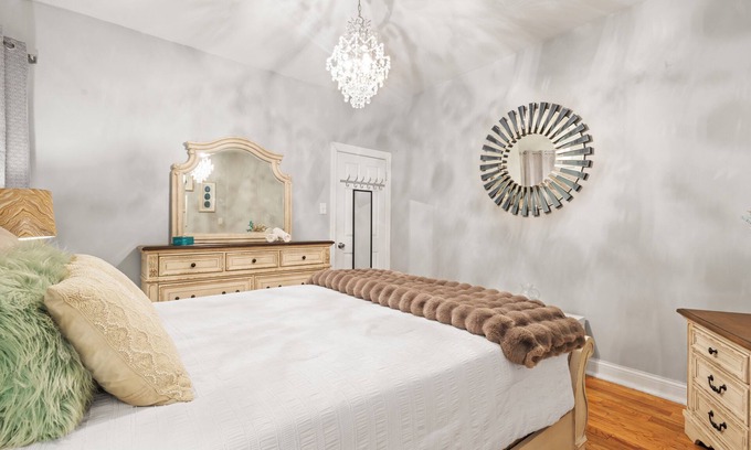 Welcome to your perfect getaway in Avalon Park, Chicago! This spacious 5-bedroom home comfortably accommodates up to 10 guests. You'll find three cozy queen bedrooms, one king bedroom, and a full bedroom with a roller bed for extra sleeping space. The home features two bathrooms—one on the main floor with a Jacuzzi and the second on the upper level with a bathtub and stand-up shower.