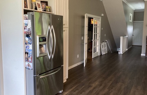 This home has 5 bedrooms, 4 have king size beds with 3 with en-suite bathrooms. The bedroom upstairs has 2 queen size beds and 1 twin. The bedroom downstairs has a King size size bed a large TV with a sectional for comfortable seating. There is also a half bath located on the main floor. This home will comfortably sleep 13.