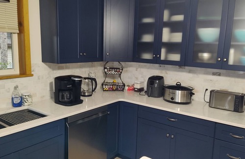 The main floor offers two comfortable bedrooms – a queen room and a king ensuite – along with a second full bathroom featuring a tub and shower. Upstairs, you'll find three additional bedrooms: one with a queen bed, another with four single bunk beds, and the last with two single beds and a full bunk bed. A second bathroom with a walk-in shower completes the upper level. A large, fully stocked kitchen and dining room overlooking the lake is on the first floor off of the first-floor living room. A second and third living/family gathering area is on the second level, with stunning lake views. Gather up there for games, movies, and wonderful conversations. There is also a 2nd-floor balcony to enjoy morning coffee or an evening toast!