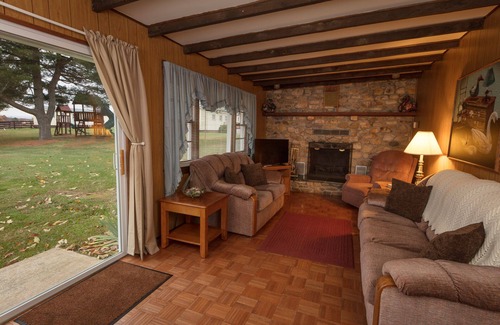 Your stay will be enhanced by the delightful amenities at your disposal. The spacious ranch house features five beautifully appointed bedrooms, two full baths, and a large kitchen with a generous 6-foot island, ideal for gatherings. You can host intimate receptions or family get-togethers in the comfortable family room or formal dining area. Enjoy outdoor entertainment with lawn games, a fire pit, and a gas grill, while children can have fun on the playground nearby. For those seeking adventure, horseback riding trails provide an exhilarating way to explore the picturesque landscape, accommodating riders of all skill levels.
