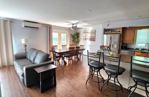 Welcoming all friends to your vacation Home Base! Full of natural light and well appointed for large groups or families. Spread out on 2 floors, this home has 2 separate living and dining areas. Located in a quiet and immaculate neighborhood, your group will be just minutes from everything the city has to offer. Large covered deck (with BBQ) overlooking a great back yard where the kids can play and walking distance to 2 parks, 5 minute walk to the Confederation Trail. Parking for up to 4 cars.