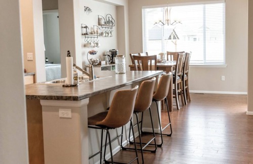 This Windsor house boasts 5 inviting bedrooms with the most comfortable beds, enough for 10 guests to relax comfortably. Including 2 queen beds, 1 king bed, and 4 bunk beds. With 3 bathrooms equipped with hair dryers and showers, guests will feel right at home. The awesome and perfect blend of comfort and convenience makes this property a quaint retreat for any traveler. Our place will help you feel at home while you're traveling in Windsor. Soak in the hot tub, putt around on the green, sit around the fire, and enjoy the family game room and coffee bar.