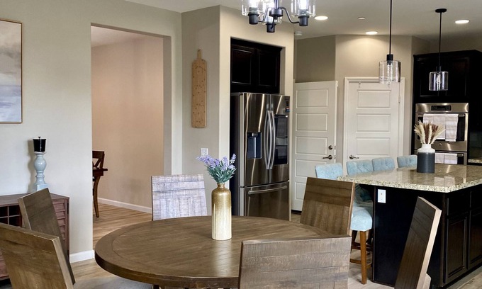 Beautiful 5 br/3 ba with game room, gym & home office! The neighborhood is surrounded by relaxed community parks including Aldergate Dog Park, El Dorado Park, and Menifee Lakes Country Club. This home is located just 2 miles from all business plazas such as Menifee Countryside Marketplace, Menifee Town Center and Menifee Lakes Plaza. Menifee is located 20miles north of Temecula Wine Country. We offer a mini crib, pack-n-play, high chair & a folding twin bed available for every booking.