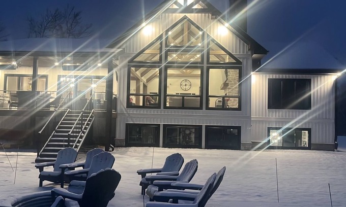 Discover the beauty of Townsend from this 5-bedroom house. With 3 king bedrooms (2 on the first floor and 1 on the lower level) , 1 queen bed, and 1 kids bunk room with 3 sets of bunk beds, this pleasant retreat offers a terrific stay for guests. This property is new construction and just hit the market in September of 2024 so there is nothing “rustic” about this stunning lake front home. Make memories with family and friends fishing in one of the 4 interlocking lakes, playing and swimming with the kids in the sand beach area that is set back in its own private area. Plenty of yard games to pull out and soak up the sun or hop on the trails for a ride on your side by side. There is something for everyone in this slice of heaven. During the winter the property is located near ski hills, snow mobile trails or walk out the doors and enjoy some ice fishing with all the comforts of home footsteps away. The property offers AC for warmer times of the year and even ceiling fans on the patio for ultimate comfortability. During cooler times of the year the property offers a gorgeous wood burning fireplace in the living room, as well as, outdoor heaters on the patio for those who just cant get enough of those fall colored leaves. Want a night with the entire family head down stairs to the entertainment room/game room and enjoy endless rounds of Buck Hunter , Golden Tee, pool or darts and don’t forget movie time on the oversized sectional with surround sound. Experience the amazing comfort and relaxation of this amazing property. Enjoy all that Townsend has to offer when you stay at our place.