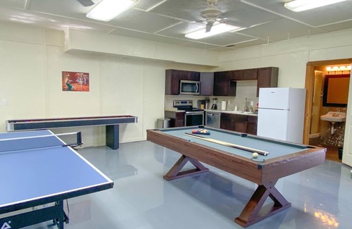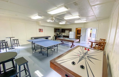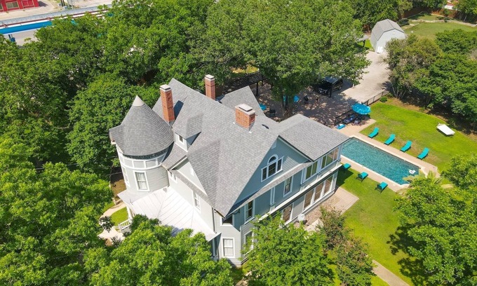 The Weinert House is spacious & conveniently located blocks from downtown nightlife & restaurants. The 2 story home has 5 bedrooms, 2.5 baths, multiple living areas, & a full kitchen. The home features an outdoor gameroom with a kitchenette, outdoor restrooms ,& an underground pool. There are firepits & bbq pits for our guests in the outdoor area. The Weinert House sleeps 14 people comfortably & allows a max of 18 people. The home comes with ample parking. There is also a garage apt. for 6 available upon request. We know you will enjoy this beautiful and unique home deep in the heart of Texas!