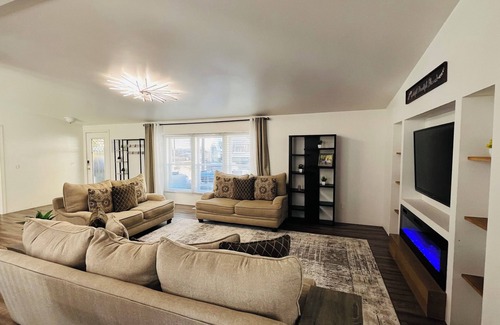 Your Glenwood Springs getaway awaits at this delightful 5-bedroom 3-bath house. This adorable property is perfect for families or groups. With 3king beds, 1 queen bed, a queen and twin bunk, and 2 living room spaces for your group to enjoy. Enjoy the convenience of WiFi, a washing/dryer machine, and AC during your stay. This property offers ample parking a big yard and the most beautiful views . Centrally located in a private safe and friendly neighborhood, just 1.5 miles downtown, 5 minutes to the natural hot springs pools, Glenwood Caverns Adventure Park vapor caves, hanging lake, Sunlight Mountain Sky resort, restaurants, shops,s and more just minutes away. Book now and enjoy everything this super house has to offer. 💕