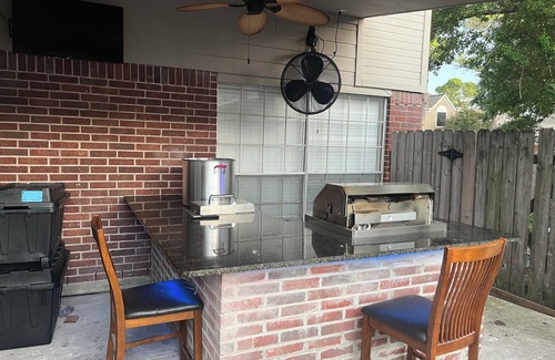 The Spacious! 5-bedroom house with Theater and Game Room in enchanting Missouri City is an ideal wedding accommodation, offering an unforgettable experience for you and your guests. This beautiful property not only provides comfort but also caters specifically to large gatherings, making it the perfect setting for your special day.