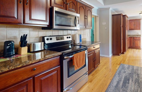 Whether you're cooking up a storm in the fully equipped kitchen with stainless steel appliances and granite countertops, or lounging by the wood-burning fireplace, this home has everything you need for a memorable stay. Central air conditioning and heating, cleaning essentials, linens, towels, and basic toiletries are provided for your convenience.