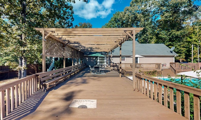 Escape to this luxurious hideaway in Summerville, GA, where you'll find all the comforts of home and more. Perfect for gatherings with family and friends, this spacious house boasts 2,880 square feet of living space and a fully equipped kitchen. Relax and unwind in the hot tub (available October - April) or enjoy the outdoor living space, complete with a private pool (seasonal), a spacious deck with seating, a grill, a pergola, and even animal-themed spring riders for the little ones.