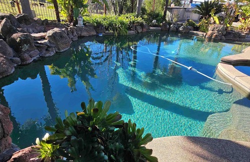 Spacious 5-bedroom tropical paradise home private pool/spa 1 level 3000 sqft is located in Orangevale. Spacious 5-bedroom tropical paradise home private pool/spa 1 level 3000 sqft provides accommodation, featuring Pet Friendly, Bedding/Linens, Wellness Facilities, among other amenities. This House features Pet Friendly, Bedding/Linens, Wellness Facilities, to make your stay a comfortable one.