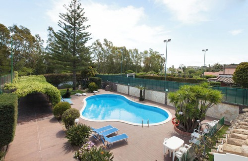 Villa Topazio is a stunning and spacious independent villa located in Flumini di Quartu Sant'Elena, in southern Sardinia, just 30 km from the charming beaches of Villasimius and approximately 20 km from Cagliari Elmas International Airport. Featuring a large private pool and an exclusive tennis court, this villa is the perfect choice for those seeking luxury, comfort, and privacy.