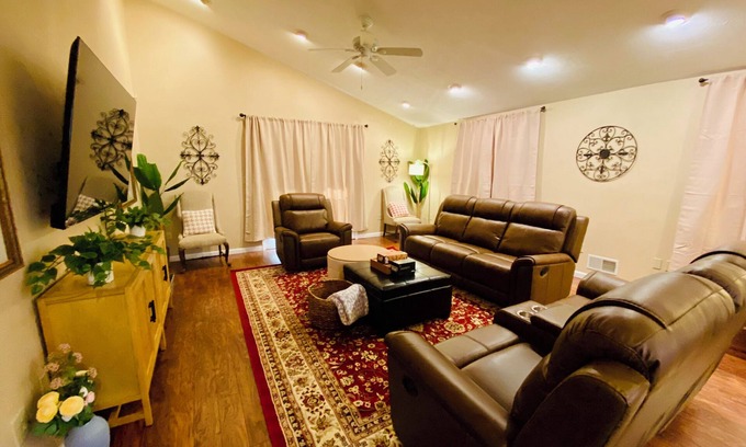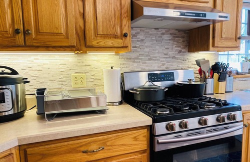 A wheelchair accessible home located in a safe and convenient neighborhood with easy access to Downtown Pittsburgh and McKnight Road shops and restaurants. Spacious, stylish and family-friendly. It has a covered front porch, covered back yard patio & a fully fenced-in yard. This one-level home has 3 full baths & 5 bedrooms w/comfy mattresses & quality bedding, ceiling fans and 7 UHD smart TVs. Only 8-10 mins to PNC Park/Acrisure Stadium/Convention Center/Strip District/Duq-Pitt-CMU/museums/UPMC hospitals/Ross Park Mall.
