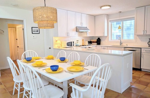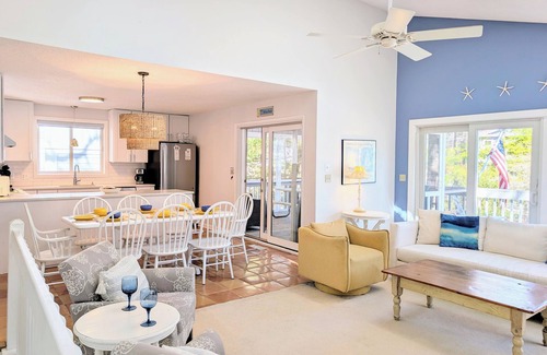 Enjoy time outdoors on the screened porch with picnic table, sunny deck, or rinse off after the beach in the enclosed outdoor shower. The home is dog-friendly for up to two dogs, so your furry family members can join in the fun (deposit and cleaning fee apply).