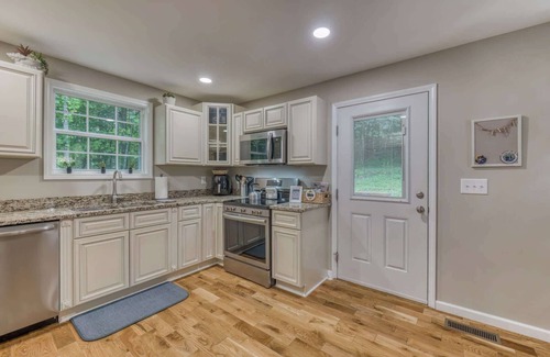 Our home is tucked away on a quiet back road, offering a peaceful retreat while still being close to everything you need. Just a 7-minute drive from East Tennessee State University (ETSU) and 10 minutes from Downtown Johnson City, you’ll have quick access to campus events, local restaurants, breweries, coffee shops, and all the charm of downtown.