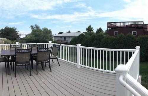 The expansive backyard is ideal for outdoor activities, complete with a BBQ grill, picnic table, and plenty of space for family fun. Plus, we provide beach chairs, a beach wagon, and toys for a day at the beach, just a short walk away.