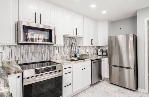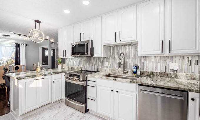 This Spacious home is perfect for corporate extended stays, med/Lg groups and family vacations. Enjoy ample space to work and relax, featuring gourmet kitchen, a dedicated workspace for your productivity, and comfortable beds with high-quality linens & large t.vs. Stay connected with fast and reliable Wi-Fi and enjoy the convenience of TWO in-unit laundry facilities. Conveniently located in central Columbus, this home offers the perfect balance of comfort and convenience for your extended stay!