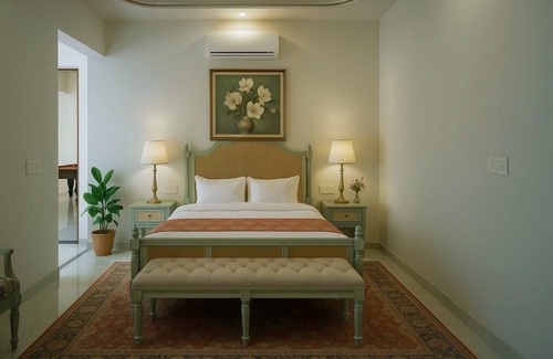 Your Jaipur adventure begins at this marvelous 6 bedroom villa. With 6 king beds, this charming property offers a cozy retreat for guests. Each of the 8 bathrooms ensures convenience and comfort during your stay. We hope you enjoy what our place and Jaipur has to offer.
