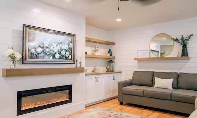 Relax in the cozy living room with plush seating and a Smart TV — perfect for movie nights or catching up on your favorite shows. Downstairs, the large finished bonus room offers additional space for games, entertainment, or extra sleeping arrangements, making it a great spot for kids and groups.