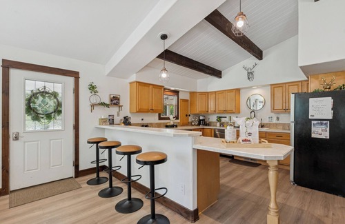 This spacious Montana retreat features 4 beautifully appointed bedrooms: three with luxurious king beds and a fun bunk room (full on bottom, twin on top with trundle twin). A queen pullout couch in the living room and a pack-n-play ensure room for up to 13 guests, including the littlest travelers. We’re proudly family-friendly!