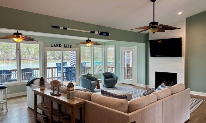 Outdoor Living: The expansive lakeside deck and screened porch create additional spaces for dining and relaxing outdoors. You can enjoy meals or unwind with a book while taking in the serene surroundings.
