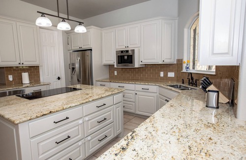 This home is equipped with high end appliances, a deluxe coffee maker, three full size refrigerators, high speed internet throughout, smart tv's a ping pong table in the garage and so much more. Enjoy the jetted bathtub, fitness room, game room with pool table and cozy living areas with additional sleeping options.