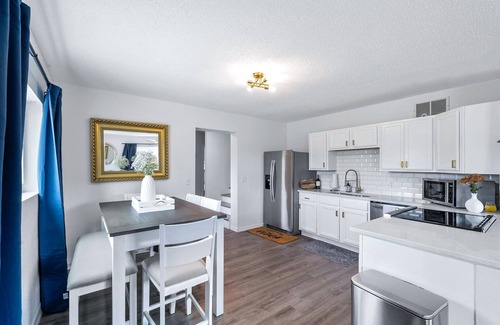 - Dual Living Areas: The home features two spacious living areas and kitchens, providing ample room for relaxation and entertainment, ensuring everyone can enjoy their own space during your stay.