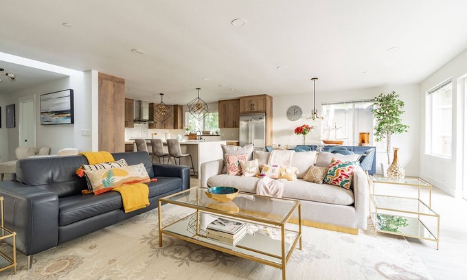 Sweetly tucked away down a private drive in a peaceful neighborhood, this 4,500 sq ft home is the perfect gathering place for large families and groups. Recently renovated with stylish finishes, two kitchens, two living areas, and thoughtful amenities, it’s designed to bring people together in comfort.