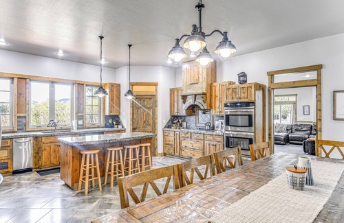 Situated in the quaint mountain town of Afton, WY, this 5-bed, 2.5-bath vacation rental provides an idyllic setting to unwind with your loved ones. Enjoy the comfort of a fully equipped kitchen, multiple living areas, a furnished patio with a gas grill, a fire pit with stunning mountain views, and a spacious yard. Even better, this home’s prime location provides easy access to scenic hikes, lakes, and fishing spots for outdoor enthusiasts. Reserve your stay now for a memorable mountain getaway!