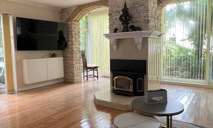 The kitchen is equipped with a refrigerator, as well as an electric kettle, a microwave, and cookware. Bathroom amenities include a hair dryer, towels, and toilet paper. And thanks to the washer and dryer, you'll even be able to travel light. Other amenities at this 4-bedroom, 2-bathroom rental include bed sheets, an ironing board, air conditioning, and heating.