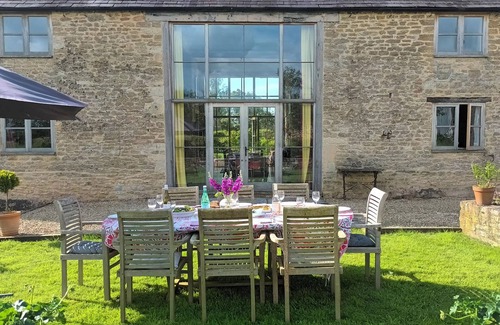 Spacious and beautifully converted 18th century stone barn, on the edge of the small unspoilt village of Lullington, near Frome in Somerset. Full height living area, large kitchen, library. Set in lovely countryside, with no through traffic and footpaths in all directions. Courtyard garden and wilded field with mown paths. Half an hour from Bath. Nearby attractions include Longleat, Hauser & Wirth, Stourhead, The Newt and Iford Manor. The perfectly peaceful English country holiday. Sleeps 6-9
