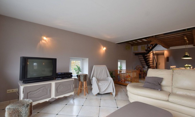 Spacious and charming house with terrace is located in Libin. Spacious and charming house with terrace provides accommodation, featuring Fireplace/Heating, Bar, Breakfast, among other amenities. This House features Fireplace/Heating, Bar, Breakfast, to make your stay a comfortable one.