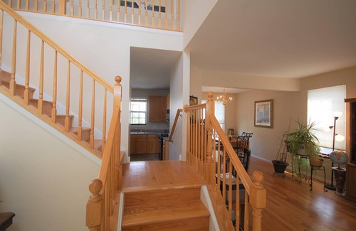 The spacious house is very comfortable , warm and relaxing setting with 5 bedrooms,4 bed rooms on 2nd floor and 1 bedroom on first floor. 2.5 baths.