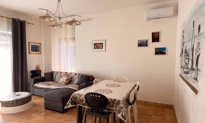 Favorito's residence is the ideal solution for a beach holiday! Located just 150 meters from the beach, it offers a welcoming double bedroom, a bedroom for guests or children, a bright living room with a comfortable sofa bed, a fully equipped kitchen and balconies surrounding the entire apartment. Perfect for families looking for relaxation and tranquility thanks to its central location guarantees all the comforts for an unforgettable stay