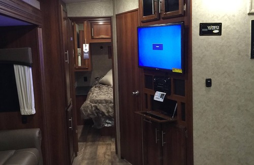 Spacious and Luxurious 37 ft Rv Trailer is located in Hollister. Spacious and Luxurious 37 ft Rv Trailer provides accommodation, featuring Parking, TV, Balcony/Terrace, among other amenities. This House features Parking, TV, Balcony/Terrace, to make your stay a comfortable one.