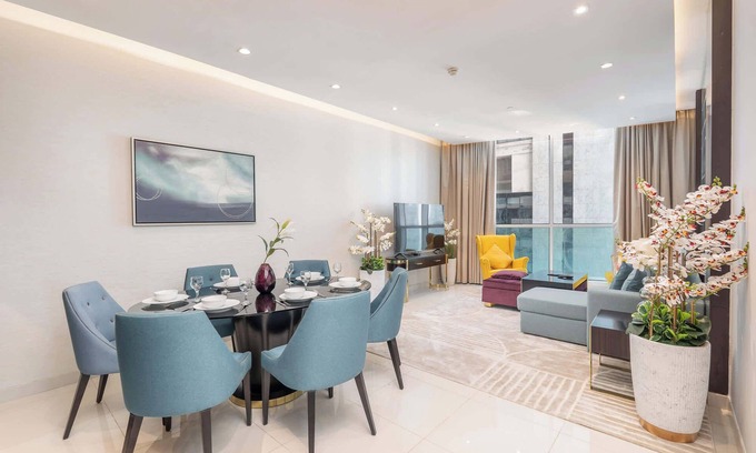 Best-rates for the Downtown Dubai apartment starts from $555 per night with includes Laundry, Air Conditioner, TV, Balcony/Terrace, Security/Safety, Internet, Kitchen with all other amenities. Perfect for Weddings is committed to ensuring every guest experiences a comfortable and extraordinary stay, whether planning a romantic getaway, a honeymoon, a pet-friendly stay, or celebrating with the entire wedding party.