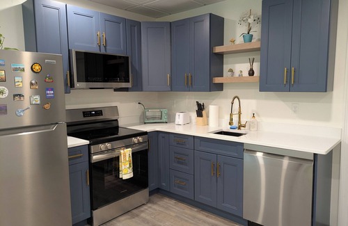 Get ready to relax in this marvelous 1-bedroom garden apartment in a quiet Nashua neighborhood surrounded by beautiful garden. This tranquil retreat features a cozy living room with a comfortable sofa bed, perfect for unwinding after a day of exploring. The bedroom boasts a queen bed for a restful night's sleep. With amenities like WiFi, brand new stainless steel dishwasher, stove, microwave and washer/dryer machine, your stay will be as enjoyable as can be. Kitchen is fully equipped with everything you will need to prepare meals. Walk-in shower comes with a rainfall showerhead. Book now and enjoy everything this beautiful apartment has to offer. Can sleep up to 4 adult guests.