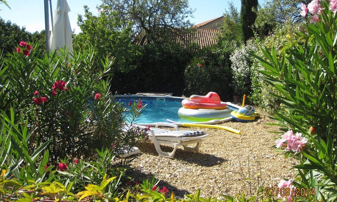 In a typically Mediterranean hilltop village, close (3km) to a town with a very rich past (the black pearl of Languedoc), at the gates of the garrigue, an area of freedom for mountain bike rides; 20 minutes from the beaches including "rochelongue" cap d'agde, come and enjoy a pleasant spacious house, 4 bedrooms, swimming pool on 1000 m2 of gardens.