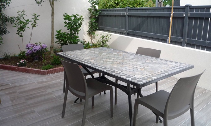 50m2 apartment, completely renovated, on the 1st floor of an individual property fenced by an electric gate, garage, terrace in the garden.