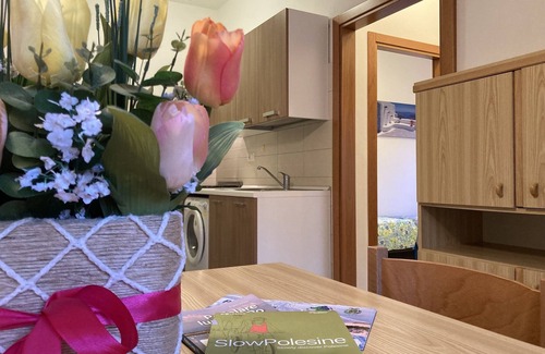 Spacious 3-room ground floor apartment in the center of Rosolina Mare, 500m from the beach and 50m from the center (Viale dei Pini). Suitable for up to 6 guests, it includes a living/dining room with kitchenette and sofa bed, 1 bedroom with double bed, 1 bedroom with 2 single beds, 1 bathroom with shower, TV, washing machine, air-conditioning, mosquito nets, 1 balcony, and 1 parking space.