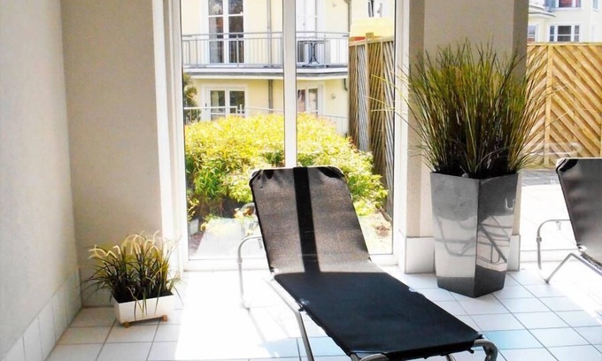 Enjoy your Baltic Sea vacation in this beautiful apartment with a spacious corner balcony. On the first floor of the small holiday complex "Residenz am Kurhaus" this holiday home invites you to stay in any season: on dreary days you can enjoy the in-house wellness area with indoor pool, sauna and solarium. There are comfortable loungers in the swimming pool for reading and relaxing. In the warm season, the nearby beach with its pier attracts sun-hungry guests. The distances are short: you can plunge into the sea floods just 100 meters away, the salt lagoon is even closer. Shopping, restaurant or café visits can be done comfortably on foot. The car can be safely left on the assigned parking space in the underground garage. A WiFi connection can be used free of charge in the house. A coin-operated washing machine and dryer are also available to guests.