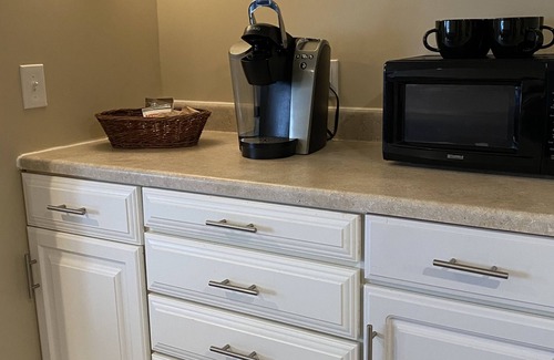 Welcome to our family friendly, private spacious, basement apartment with kitchenette. We are just minutes from the Scheels Soccer Park, Overland Park Arboretum, Heritage Park, Drive 5, and Blue Valley Rec. Our space is perfect for families, couples or professionals. Enter through private, self check-in door to a spacious room with workspace, pool table, dining area and kitchenette. A second living area includes bunk beds, a large sectional couch, tv and gaming console. Games and movies are provided. Full bathroom includes a standup shower with shampoo, conditioner and soap. Plenty of plush towels and washcloths are provided as well as a hairdryer. Forget something? Extra toiletries available upon request. The kitchenette includes a refrigerator, microwave and Keurig coffee maker. We provide a Brita water pitcher, water bottles, starter coffee and snacks. The bedroom includes a new queen bed with down comforter and blankets. There is a closet with dresser and bedside lamps include USB charging ports. We aim to provide everything you need to make for a comfortable and memorable experience. We are available onsite should any need arise. We live in separate space upstairs so there may be sounds of people walking around but we are conscious of this and limit noise after 9pm. While you are in the area we encourage you to Check out the Arboretum or Heritage Park for great walking trails, golf, frisbee golf, fishing. We are a great spot for families in KC for youth sport’s tournaments.