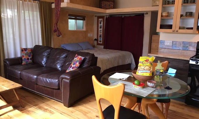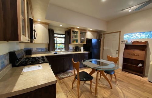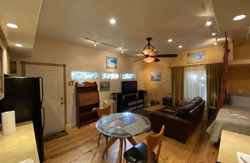 This roomy Studio has everything you need to enjoy your vacation near the beach. Beautiful custom furnishings with hardwood floors, luxurious bathroom, full kitchen, and dining area. Everything provided including 4 beach cruiser bikes, beach towels, beach chairs and boogie boards. Well behaved pets are welcome. There is no extra pet fee. Great neighborhood in North PB on Tourmaline just 2 1/2 blocks from the beach. Restaurants, bars, shops, all with walking distance. We even have the fixings for two margaritas, chips and salsa in your room ready for arrival.