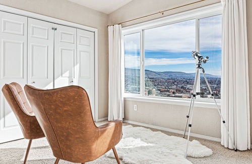 Unwind from your adventures with sweeping views & spacious, modern living. Create meals in the fully equipped kitchen. Relax in the hot tub or grill on the large deck. Be entertained by the two smart TVs, guide books, instruments, board games, telescope, and record player. Downtown Klamath Falls is four blocks away & gateway to many recreational opportunities. Crater Lake National Park is just 60 miles away. Four king beds and dog friendly!